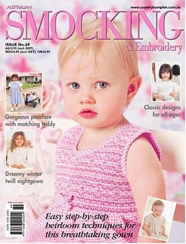 Australian Smocking & Embroidery is by far, the best of the smocking/embroidery magazines that are available today. Not only are the projects and pictures glorious, but the patterns are included with each project. Most issues offer a variety of sizes and styles for using smocking, but focus mainly on children's clothing. These magazines become valuable after time, as some issues as they are out of print, will double and triple in value. This is a much sought after magazine in the finer cloth/heirloom shops. Inside each issue, there will be a step by step lesson of a technique used in a project. Smocking and Embroidery plates abound, and you can order the kit to make the projet from Country Bumpkin in Australia.